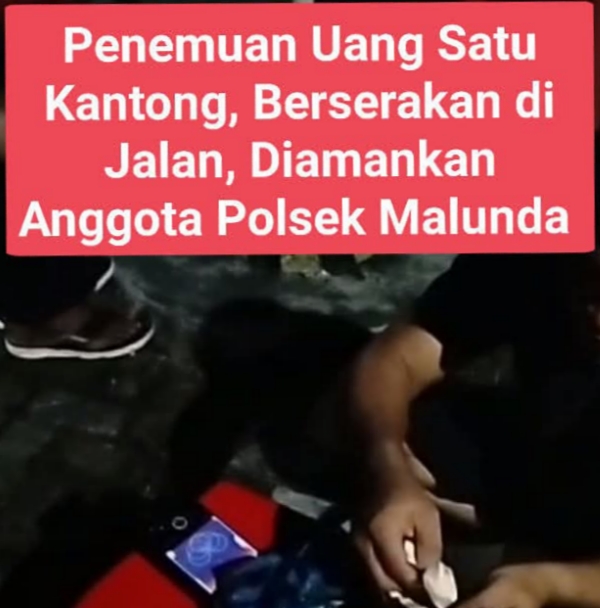Penemuan uang tersebut bermula dari area sekitar Kantor Camat Malunda dan tercecer hingga ke depan Mapolsek Malunda. Di lokasi, petugas menemukan sebuah kantong plastik berisi uang tunai dengan pecahan mulai dari Rp5.000 hingga Rp50.000.